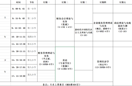 MPAcc2501班2025年秋学期课表