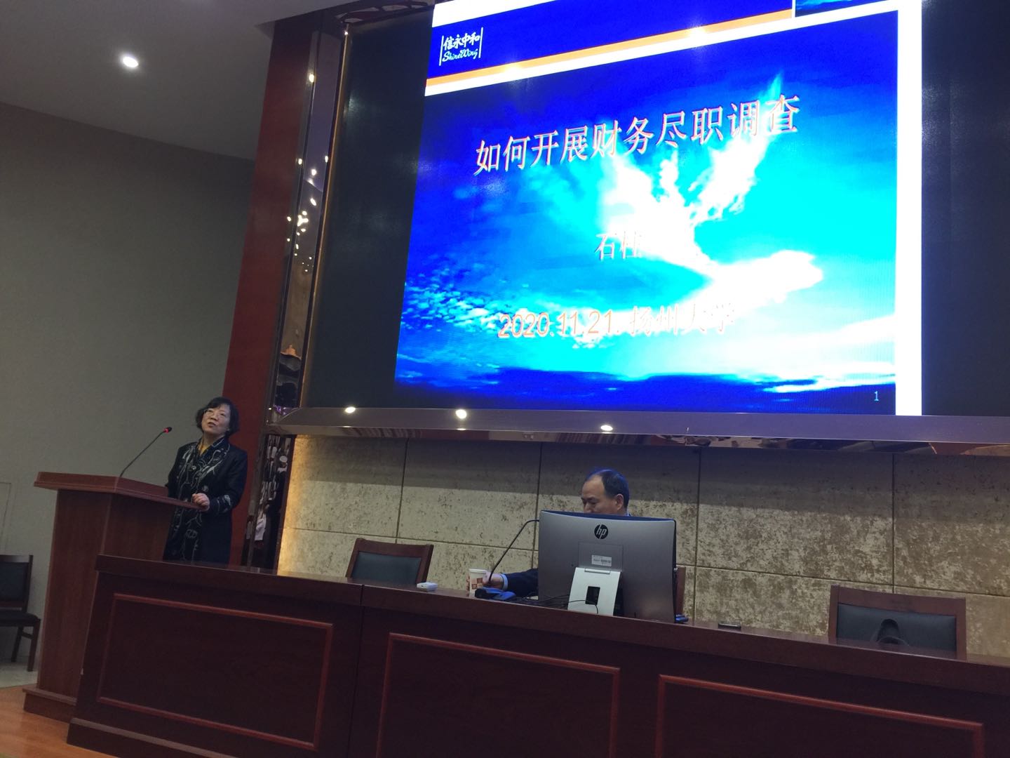 2020年11月21日上午,信永中和会计师事务所审计合伙人石柱先生应邀来到扬州大学商学院,为MPAcc学员做了题为“如何开展财务尽职调查”的专题报告,中心主任缪艳娟教授主持了报告会。