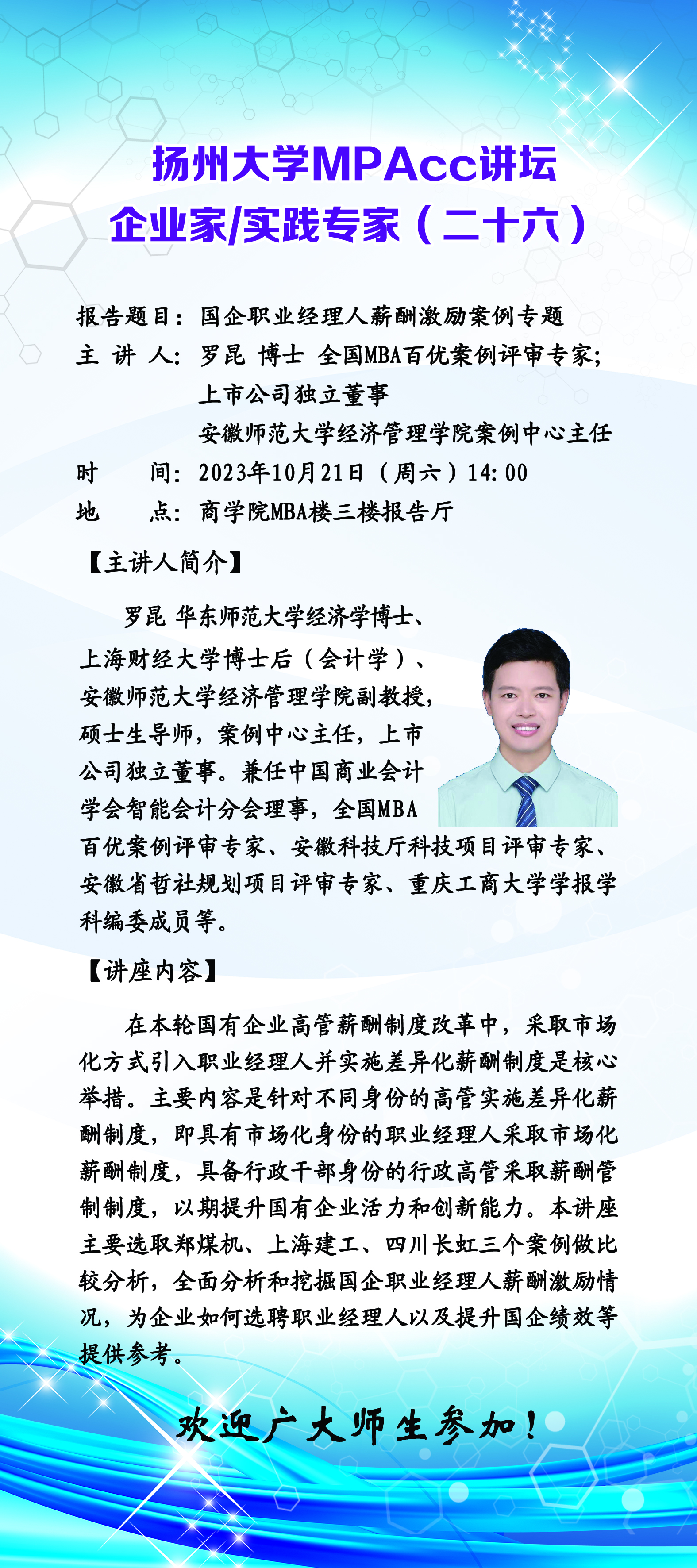 扬州大学MPAcc讲坛(二十六):国企职业经理人薪酬激励案例专题