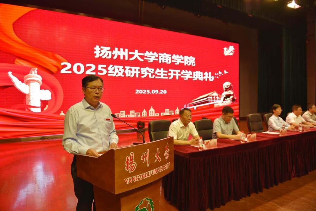 “艰苦自立”的校训,是扬大精神的根基,更是商院学子逐梦前行的精神旗帜。愿各位新同学以“艰苦”为笔,在专业学习中坚守学术端正,筑牢知识根基;以“自立”为翼,既要沉心钻研、积极投身科研探索,又要敢闯敢试、勇于在实践中锤炼本领。期待大家将青春志向融入时代洪流,用严谨的治学态度、扎实的科研能力、务实的实践精神,书写商院人的奋进答卷,在新时代的浪潮中彰显扬大人的使命担当!
