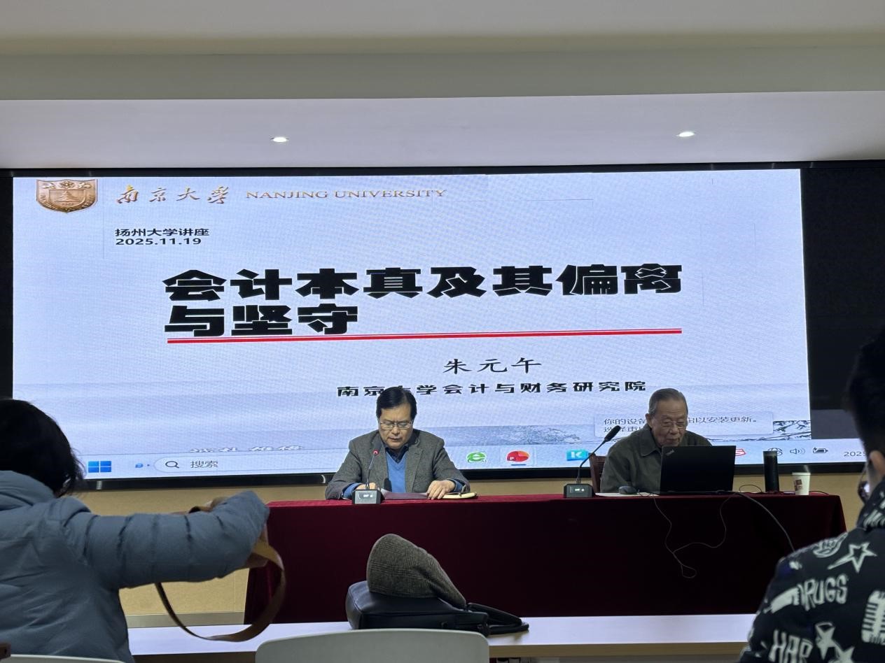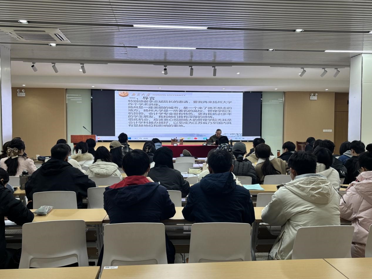 2025年11月19日下午,南京大学朱元午教授应邀莅临我院,为MPAcc师生带来了一场题为《会计本真及其偏离与坚守的思考》的精彩学术报告,会议由院长李志斌教授主持。