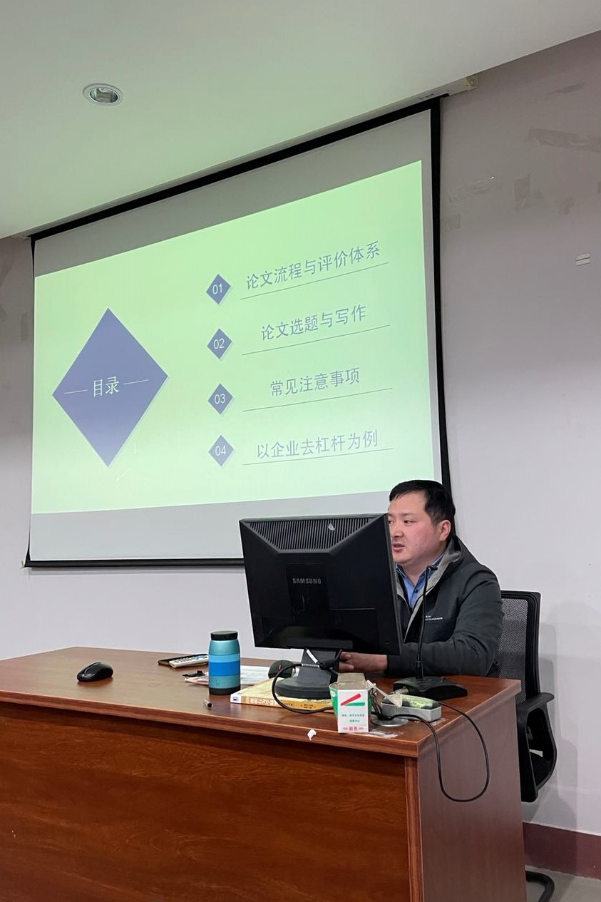 吴博士从论文流程与评价体系、论文选题与写作、常见注意事项和以企业去杠杆为例四个方面进行了分享,为同学们全面系统地传授了他多年论文写作的宝贵经验。