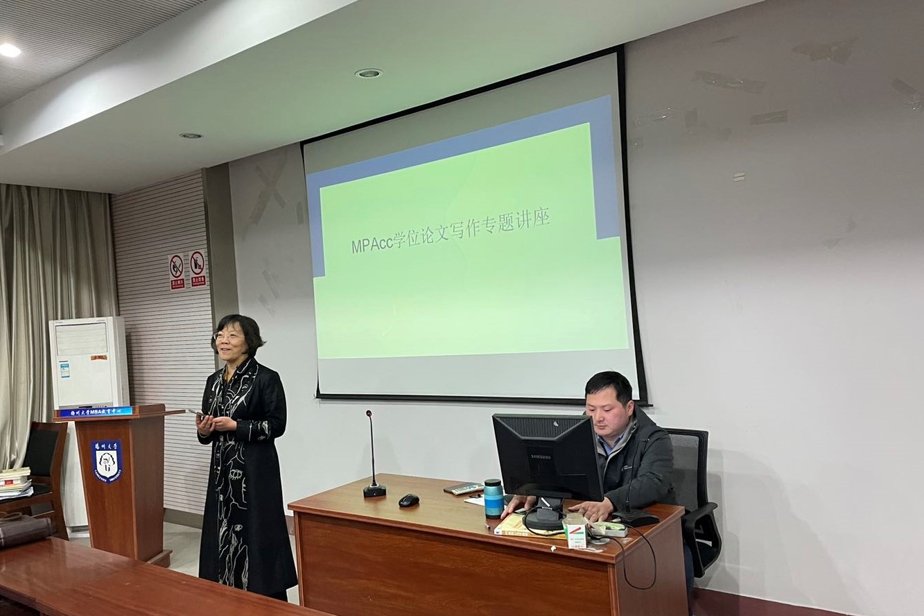 2020年11月21日,扬州大学商学院吴尧博士应邀为扬州大学MPAcc19级全体学员做了题为“MPAcc学位论文写作”的专题讲座。中心主任缪艳娟教授主持了报告会。